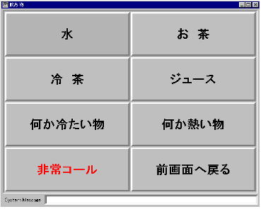 ☆ 內容の決定 「お茶」のキーが黃色に変化したのを確認後、瞬きまたは數秒間の凝視をします。「お茶」のキーが今度は赤色に変化して音聲が流れます。(音聲:「お茶が飲みたいです。」) |