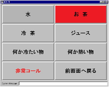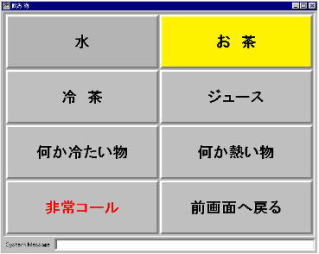 ☆ 項目の選択 「お茶」の項目を見ます。「お茶」のキーが黃色に変化します。 |